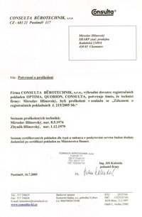 Osvědčení o autorizaci č. A0015Consulta Bürotechnik
